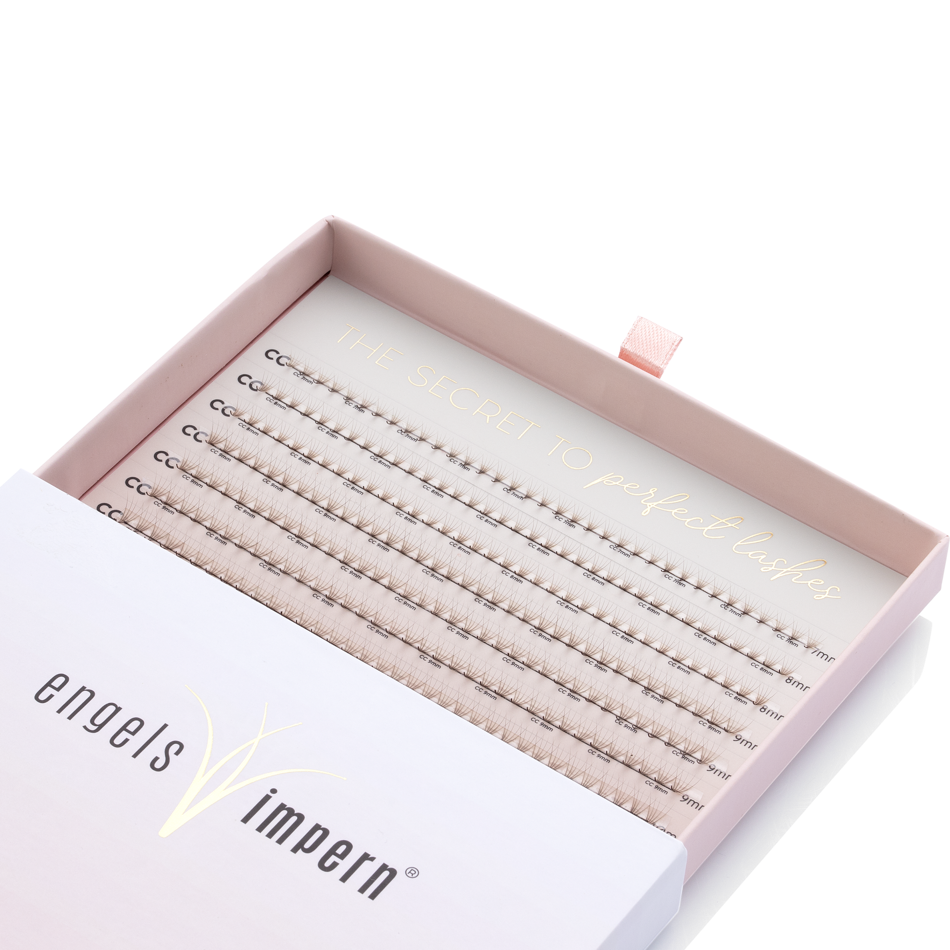Die schmalen, sauberen Fächerfüße ermöglichen eine stabile Platzierung auf der Naturwimper und sorgen für eine gleichmäßige, definierte Lash Line mit eleganter Espresso-Tiefe.