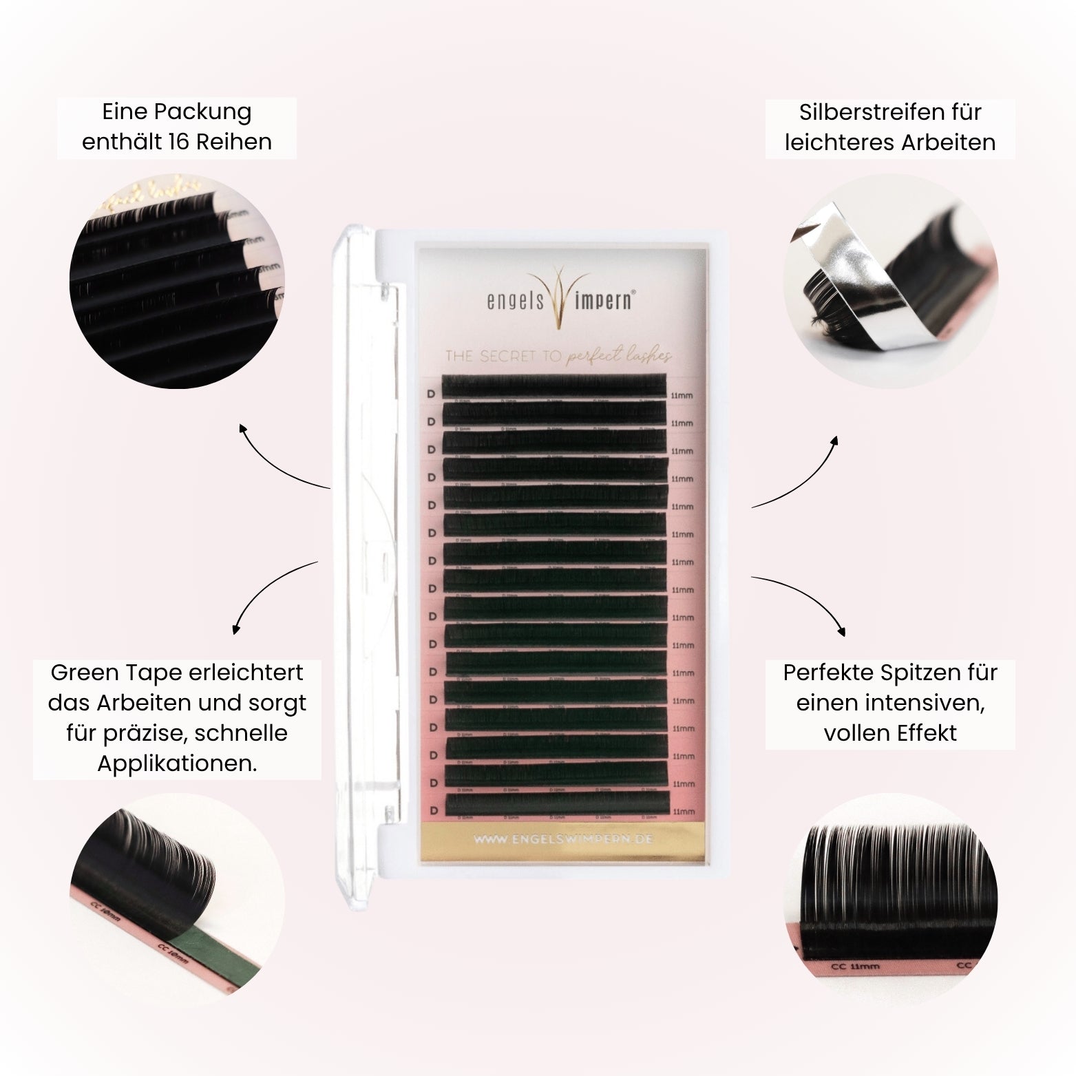 Die Qualität der verwendeten Materialien und eine sichere Verarbeitung sind entscheidend für Haltbarkeit, Tragekomfort und Wimperngesundheit. Unsere Extensions sind für den professionellen Studioeinsatz konzipiert und erfüllen hohe Anforderungen an Material, Verarbeitung und Produktsicherheit.