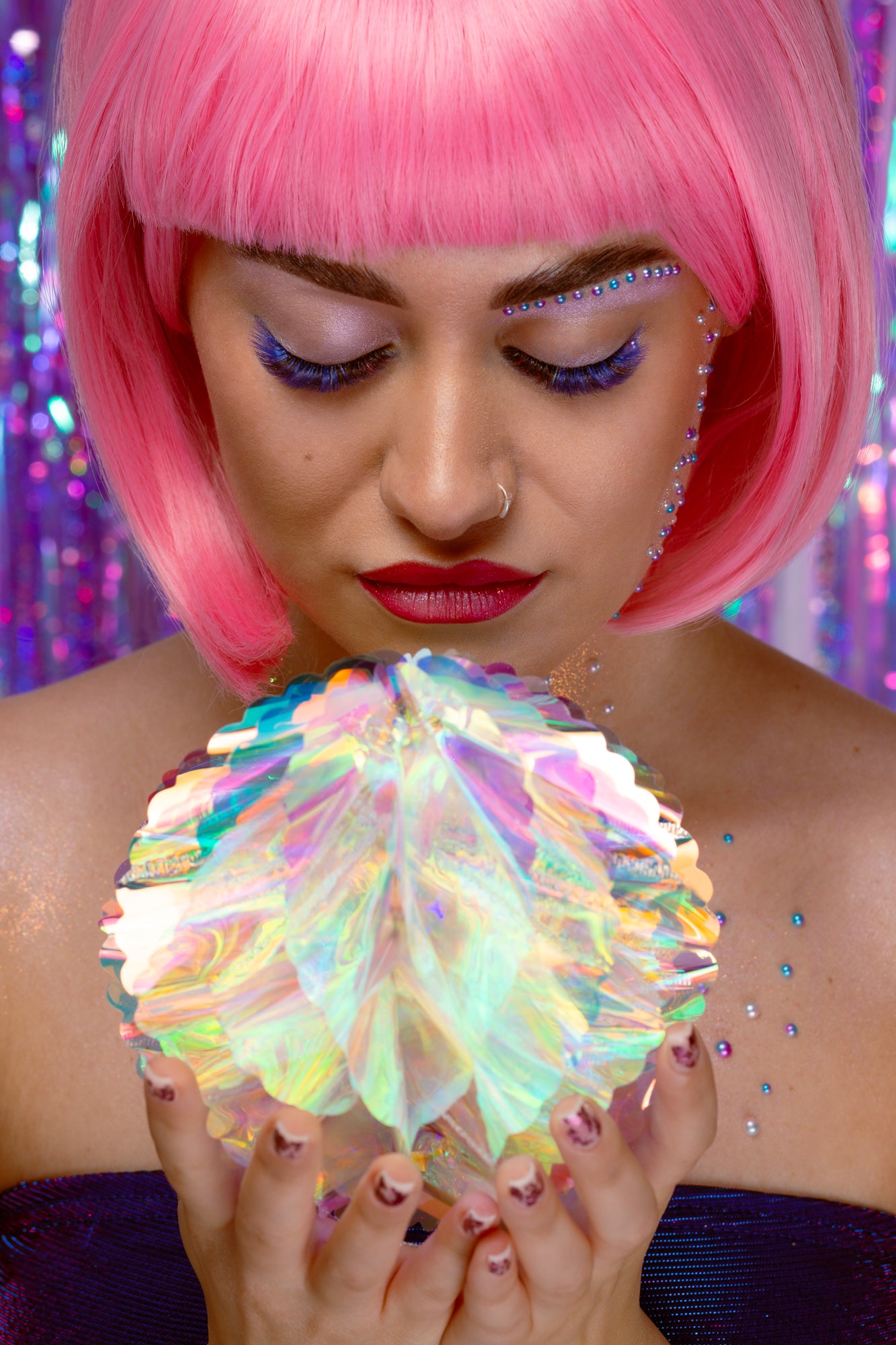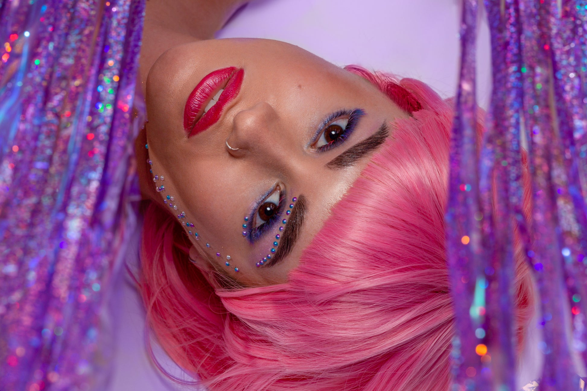 Lila Wimpern lassen sich vielseitig einsetzen: als feiner Akzent, für Spikes oder für stilvolle, kreative Details. Besonders beliebt ist diese Farbe, um braune, grüne oder blaue Augen gezielt zu betonen, ohne aufdringlich zu wirken.
