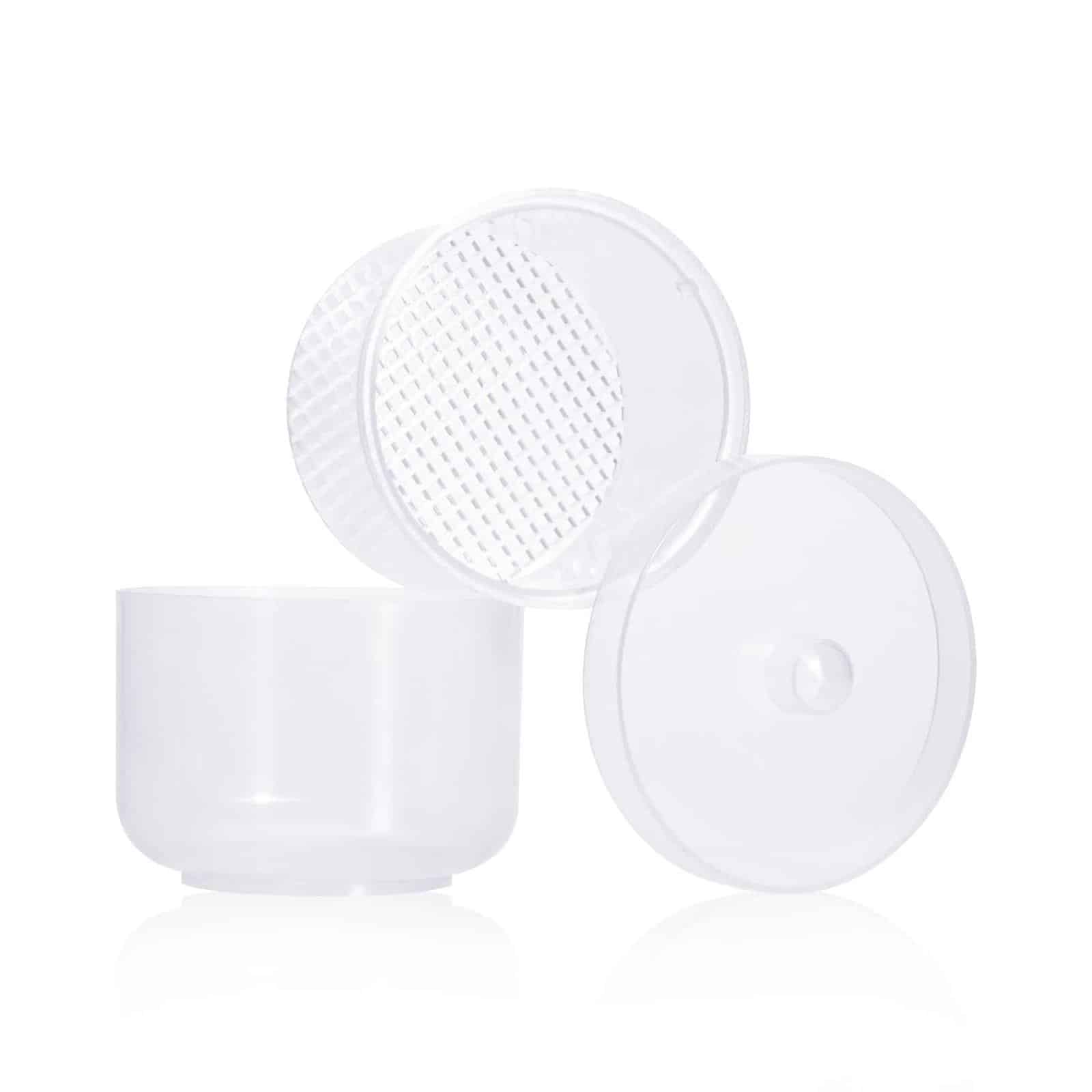 Befülle den Behälter mit Wasser und etwas Spülmittel - alternativ kann auch alkoholfreies Reinigungsfluid verwendet werden. Lege dann die verwendeten Pads und Tools in den Behälter und lass diese für einige Zeit dort einweichen. Entnehme zur Reinigung den im Becher integrierten Abtropfeinsatz und spüle die Produkte anschließend unter laufendem heißen Wasser ab, bis sich alle Rückstände vollständig abgelöst haben und das Wasser klar ist.